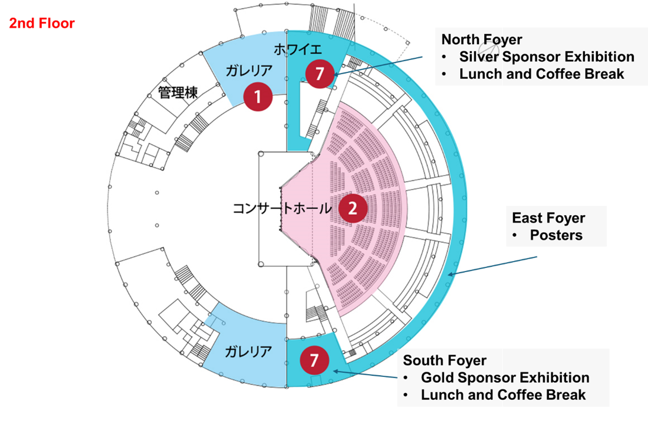 All Workshops, Keynote Lecture, Invited Speach and Technical Programs will take place in Shiiki Hall. The poster sessions and exhibition space will be in the Foyer on floors 2.